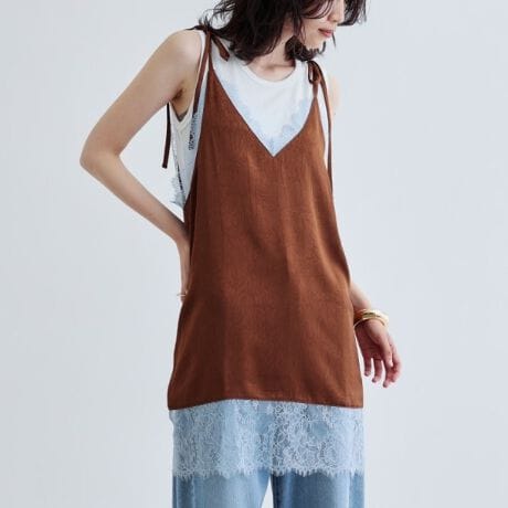 ランジェリーキャミブラウスは、エッジの効いたデザインと贅沢なレース使いが特徴。