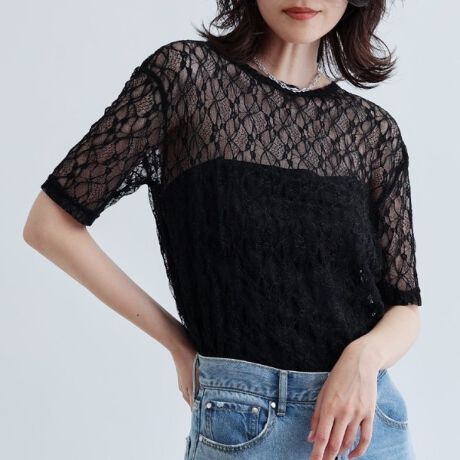 ベーシックなインナーと組み合わせることで、レイヤードスタイルを楽しむことができます。