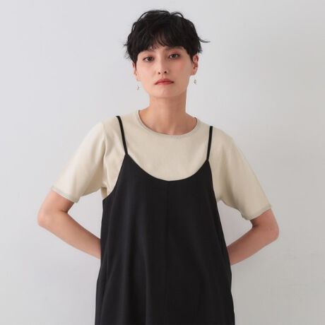 ・シンプルな半袖デザインで、一枚ではもちろんジャケットやキャミソールワンピースなどのインナーにもオススメです。