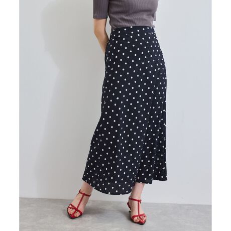 スカートの身頃をバイヤスに裁断する事で、ウエストから裾にかけての綺麗なドレープが細見えするシルエットに仕上げています。