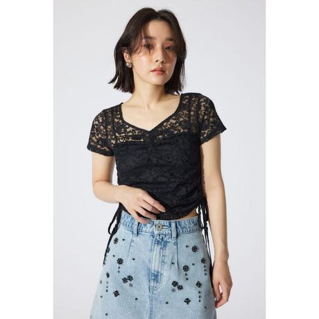 バストギャザーデザインレースカットトップス