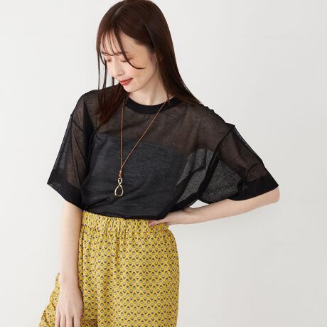 シアー感とゆったりとしたシルエットが女性らしい雰囲気を演出してくれるニットTシャツ。