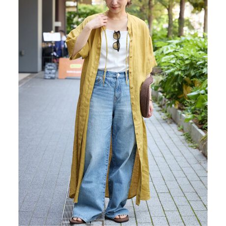 夏の清涼感あるリネンワンピーススタイルにおすすめです。