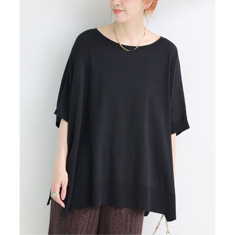 強燃糸のコットンを使用したサラッとした肌触りが特徴のポンチョ型ワイドシルエットで、軽さのある着用感で着やすいニットに仕上げました。