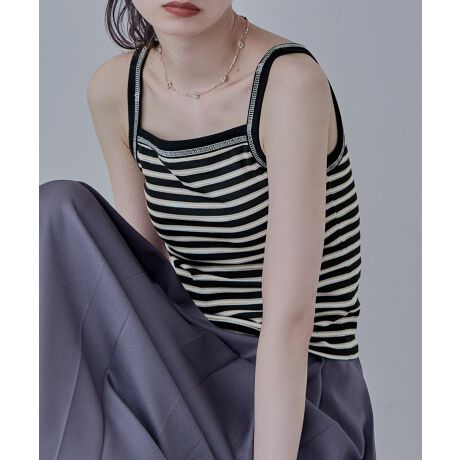 スタイリングのアクセントとなるリブボーダーのキャミソール。