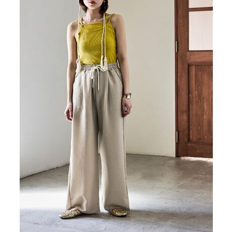 ウエスト部分のドローコードがポイントになっているので、トップスをインしてもアウトしても◎