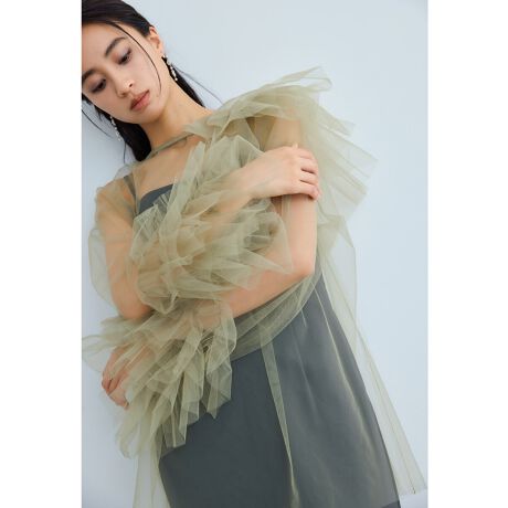 微配色のチュールを重ねてボリューム感のあるフリルを部分的に飾り付けました。