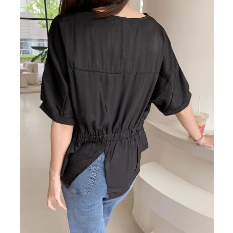 さらりとした肌触りの生地に、ウエストゴム仕様を取り入れたブラウス。自然にウエストラインを引き締め、ふんわりとしたシルエットにメリハリをプラス。締めつけ感が少なく、リラクシーな着心地が魅力です。