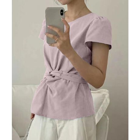 ふんわりとしたフレンチスリーブに、ウエストをリボンでキュッと結べるフェミニンなデザインが魅力のブラウス。程よいハリ感のある素材を使用し、立体感のあるシルエットの一着。