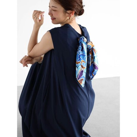 バックのスカーフ使いがお洒落な雰囲気を醸し出すカットソーワンピース。