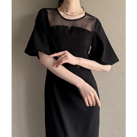 シアードッキング胸元デザインワンピース(薄手、裏地なし)