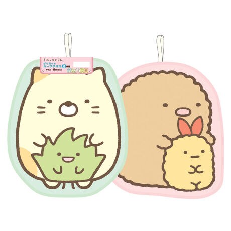 すみっコぐらし ダイカットマイクロループ付ハンドタオル2P(ねこ&えびふらいのしっぽ)