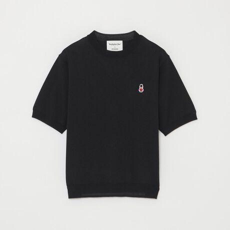 シンプルな半袖ニットにオリジナルキャラクターのBUCKINGHAM BEARワッペンがワンポイントに。