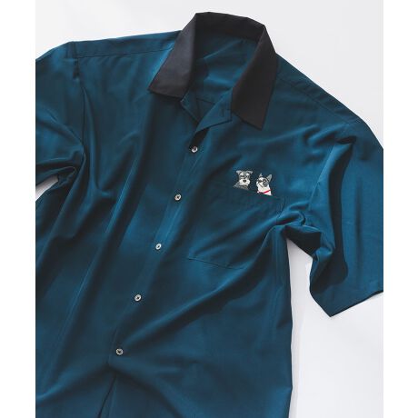 【BLUE STANDARD】ポケットアニマル刺繍 襟配色 シャツ