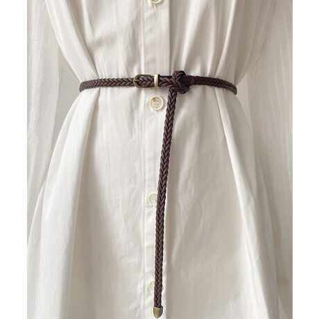 編み込みデザインと極細レザーの組み合わせが、上品で大人可愛い印象に。