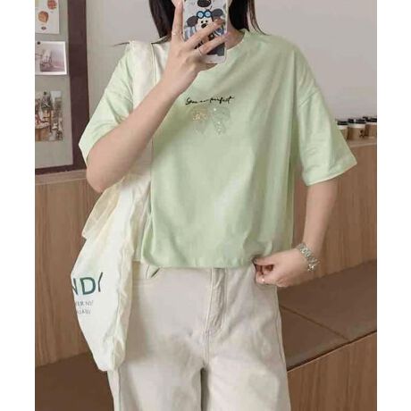 柔らかいカラーにリボン柄を添えた、ガーリーカジュアルな印象のTシャツ。さりげないデザインでコーディネートを楽しめます。