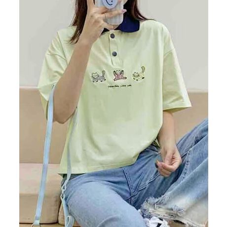 かわいらしい動物刺繍がワンポイントなコットンポロシャツ。クラシックなポロシャツのデザインに、遊び心あふれる刺繍がアクセントとなり、日常のカジュアルスタイルにぴったりです。