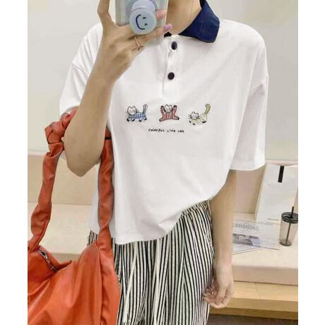 かわいらしい動物刺繍がワンポイントなコットンポロシャツ。クラシックなポロシャツのデザインに、遊び心あふれる刺繍がアクセントとなり、日常のカジュアルスタイルにぴったりです。