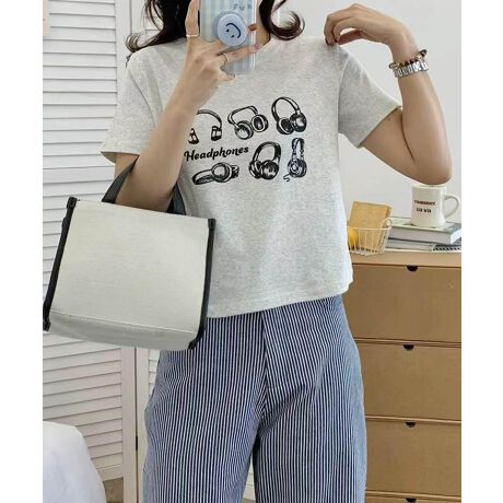 音楽好きの心をくすぐる、ヘッドホンモチーフのプリントが目を引くTシャツ。カジュアルな中に個性をプラスしてくれる1枚です。