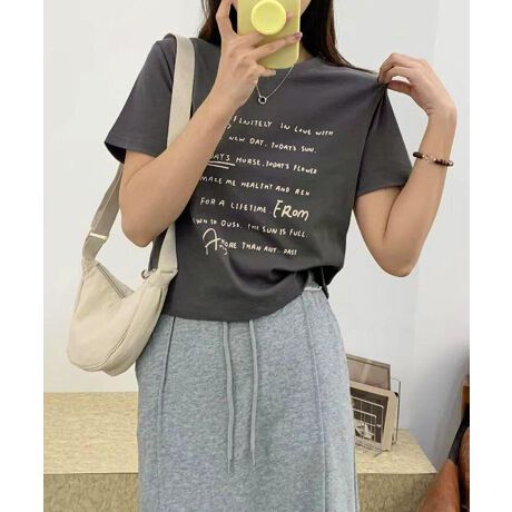 さりげない英字プリントがコーデにアクセントを加え、デニムやワイドパンツなど様々なボトムスと好相性です。