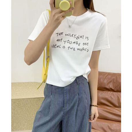 フロントにあしらわれた英字プリントがアクセントになったカジュアルTシャツ。程よくゆったりとしたシルエットで、リラックス感のある着心地に♪