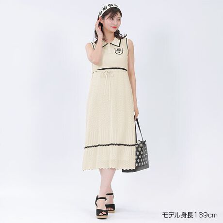 バイカラーのベーシックなポロ型ニット・ワンピース。