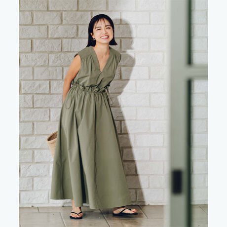ノースリーブですが肩幅をカバーしていて、ハイウエストでウエストがギャザーなのでメリハリがでてシルエットが綺麗です。