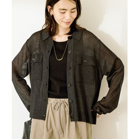 ラメ シアー素材 きれいめ 大人カジュアル 襟付き 羽織り 軽い着心地 トップス カーディガン 30代 40代 レディース カジュアル 春夏 25SS AMERICAN HOLIC AMERICAN HOLIC アメリカンホリック アメホリ