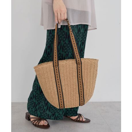 ナチュラルな雰囲気が魅力的なカゴバッグ。可愛らしい丸みのあるフォルムにモチーフ入りのハンドルが目を惹くアクセントをプラスします。内側ポケット付きで使い勝手の良さも魅力的。デイリーにはもちろんリゾートシーンにも活躍するおすすめのアイテムです。※モデル着用画像は、光の当たり具合で色味が違って見える場合がございます。※お使いのモニター環境によって商品の色味が違って見える場合がございます。