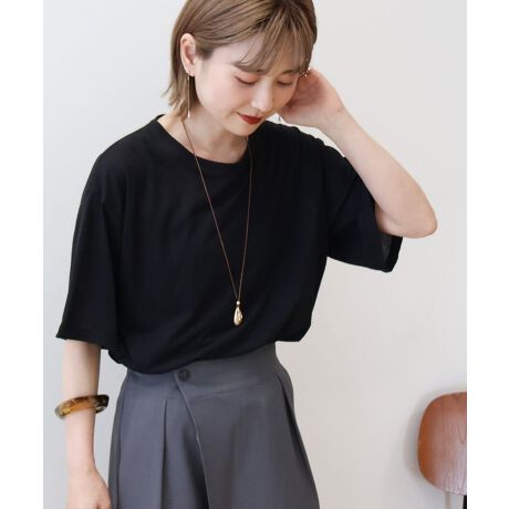 柔らかな肌触りのコットンベース素材で仕立てたシアーTシャツ。身幅を持たせたボックスシルエットが身体のラインを拾いすぎず、程よく上品な抜け感を演出します。落ち着いたデザインで、日常使いからセミフォーマルシーンまで対応。タックアウトしたスタイルはもちろん、軽くインしてニュアンスを付けたスタイルもおすすめ。