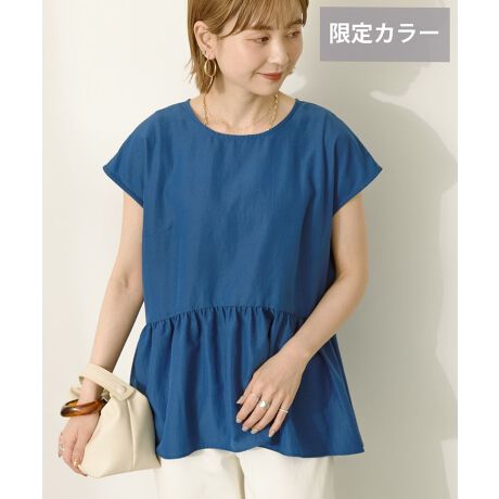 肌触りのさらりとした素材で仕立てたデザインブラウス。ギャザーたっぷりに切り替えたペプラムシルエットがさりげなく身体のラインをカバーして、スタイルアップ効果も期待できます。ラウンドヘムがすっきりとしたスタイリングを演出。背中の小粒クリアボタンが抜け感をプラスして、デイリーに活躍するおすすめのアイテムです。