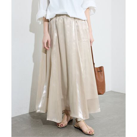 光沢感がきれいなシャイニー素材を使用したフレアスカート。