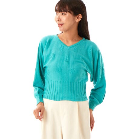 大人カワイイ少し落ち着きもあるパステルカラーに、お花柄の編地を組み合わせて新鮮なデザインにしあがりました。