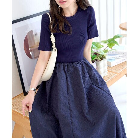 程よく甘さを抑えた、エンボスドッキングリブニットワンピース。