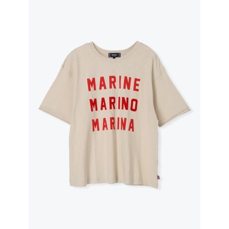 大胆にプリントされたロゴデザインが目を惹くTシャツ。