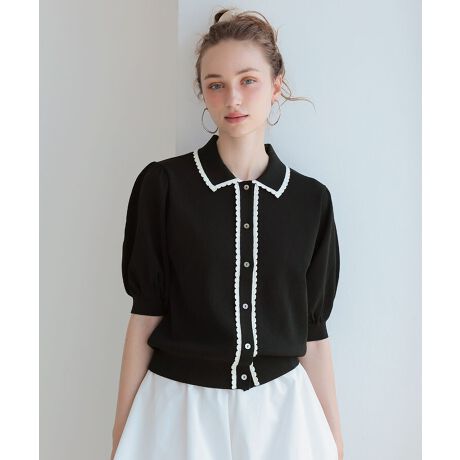 スカラップデザインが魅力のポロカーディガン。