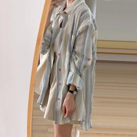 さわやかな印象を与えつつもトレンドレスに使えるマルチストライプ柄ビッグシャツ♪<br>さらっと心地の良い素材を使用し、ゆるっと気兼ねなく着られるオーバーサイズだから真秋冬の羽織としても使いやすいのがポイント◎<br>さらにゆったりとしたシルエットは、抜け感のある装いに仕上げてくれます。<br>シーズンレスで使え、ボタンを開けても閉じても着こなせるオールマイティーな一着です!<br><br>■注意事項<br>・お使いのモニターや端末により、質感・色合いが実際の商品と異なって見える場合がございます。<br>・表記サイズは測り方によって1〜2cmの誤差が生じる場合がございます。ご了承くださいませ。