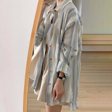 さわやかな印象を与えつつもトレンドレスに使えるマルチストライプ柄ビッグシャツ♪<br>さらっと心地の良い素材を使用し、ゆるっと気兼ねなく着られるオーバーサイズだから真秋冬の羽織としても使いやすいのがポイント◎<br>さらにゆったりとしたシルエットは、抜け感のある装いに仕上げてくれます。<br>シーズンレスで使え、ボタンを開けても閉じても着こなせるオールマイティーな一着です!<br><br>■注意事項<br>・お使いのモニターや端末により、質感・色合いが実際の商品と異なって見える場合がございます。<br>・表記サイズは測り方によって1〜2cmの誤差が生じる場合がございます。ご了承くださいませ。