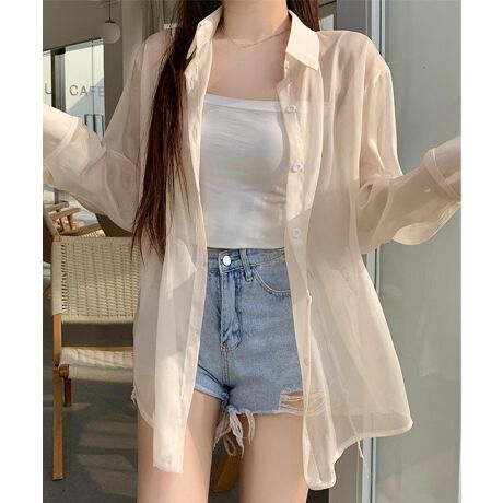 トレンドのシアー素材を使用した、軽やかな透け感が特徴のシャツ。