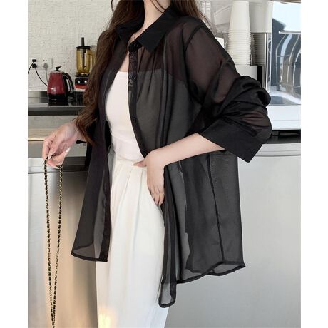 トレンドのシアー素材を使用した、軽やかな透け感が特徴のシャツ。