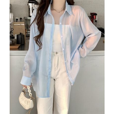 トレンドのシアー素材を使用した、軽やかな透け感が特徴のシャツ。