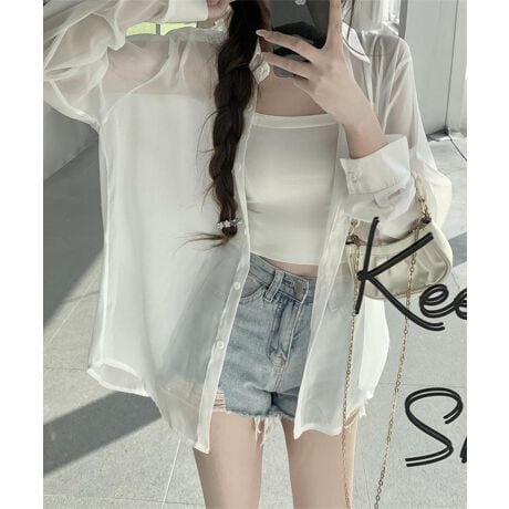 トレンドのシアー素材を使用した、軽やかな透け感が特徴のシャツ。