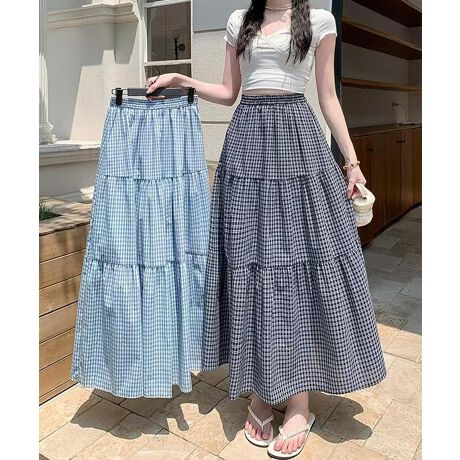 ナチュラルで親しみやすい雰囲気を持つ、チェック柄のティアードスカート。ふんわり広がるボリューム感のあるシルエットが、カジュアルながらも女性らしさを感じさせ、コーディネートに軽やかなアクセントを加えます。