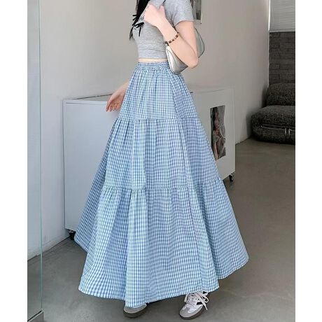ナチュラルで親しみやすい雰囲気を持つ、チェック柄のティアードスカート。ふんわり広がるボリューム感のあるシルエットが、カジュアルながらも女性らしさを感じさせ、コーディネートに軽やかなアクセントを加えます。
