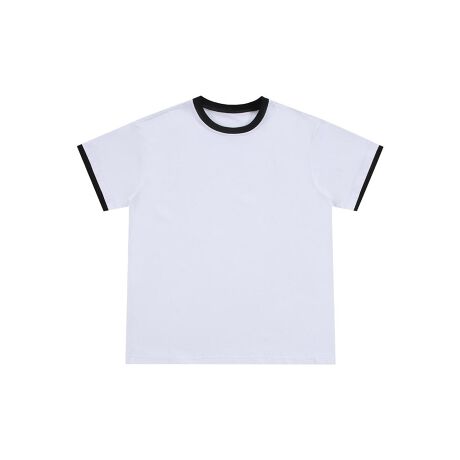 襟元と袖口のバインダー配色が印象的な、ストリートテイスト漂うTシャツ。シンプルなボディにさりげないアクセントを効かせることで、無地Tでは物足りない方にもおすすめの一枚。日常コーデに自然とメリハリを加えてくれます。