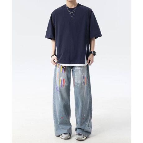 落ち着いたベースカラーに配色切り替えが映える、スポーティTシャツ。裾部分に施されたV字風の切り替えラインが、シンプルな中にもアクセントを加えています。