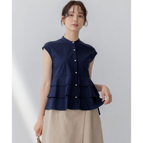 ■デザイン・パール釦がアクセントのきちんと見えトップス。・涼しくご着用いただけるフレンチスリーブデザイン。・半袖カーデと合わせてレーヤードスタイルもおすすめです。