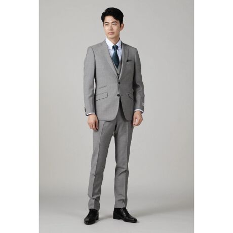 今季のトレンドスーツスタイルに欠かせない伸縮性のあるスマートに着こなせる素材を使用したモダンスマートなスーツです。シャープなラペルでベーシックながら大人の佇まいを醸し出せるモダンかつスタイリッシュな一着です。同素材のベストを合わせスリーピースとしてビジネススタイリングの巾も広げられます。