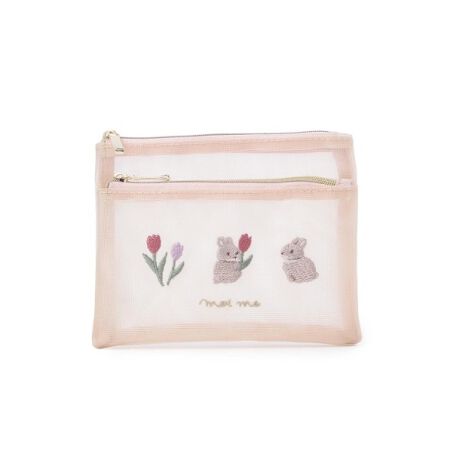 ポーチには動物の刺繍が入ったメッシュ生地を採用。