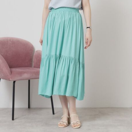 ティアードデザインが足元をふわっとエレガントに演出してくれるロングスカート。